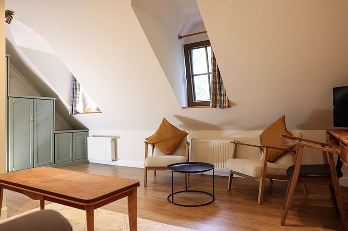 Avec sa lucarne au-dessus du lit et son salon séparé, elle allie caractère intemporel et confort moderne. Le canapé-lit offre un espace supplémentaire pour un adulte ou deux enfants : parfait pour un séjour en famille confortable.